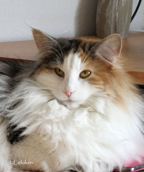 Fille de Fibuline de Laïloken et donc petite fille de Vivian Leigh et Terek , Izadoori alias "Zouzou" s'inscrit dans mon travail de continuité de lignée, axé depuis plusieurs années sur Vivian. Elle apporte aussi le pedigree très intéressant de son père Iceboy , un chat que j'ai toujours beaucoup aimé pour ses splendides lignes profil/front et son caractère.