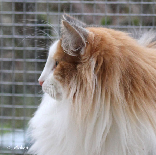 Avec un profil tiré à la règle et une queue immense, une fourrure dense et de super qualité pour une silver, il n'y a pas grand chose à reprocher à cette belle jeune chatte hormis sans doute son placement d'oreilles un peu trop bas.