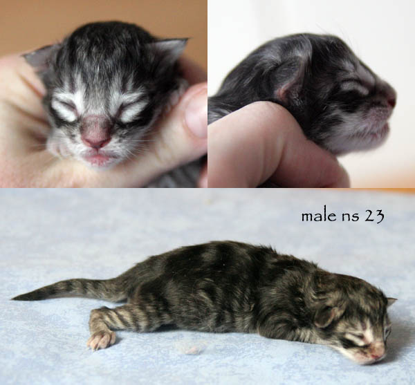 | Déjanire | femelle | black mackerell tabby (n 23) | Danaé | femelle | black silver mackerell tabby (ns 23) | Dryas | mâle | black silver mackerell tabby (ns 23) | Diomède | mâle | black mackerell tabby (n 23) | Dédale | mâle | black mackerell tabby (n 23) | Damoclès | mâle | black blotched tabby & blanc (n 09 22) |