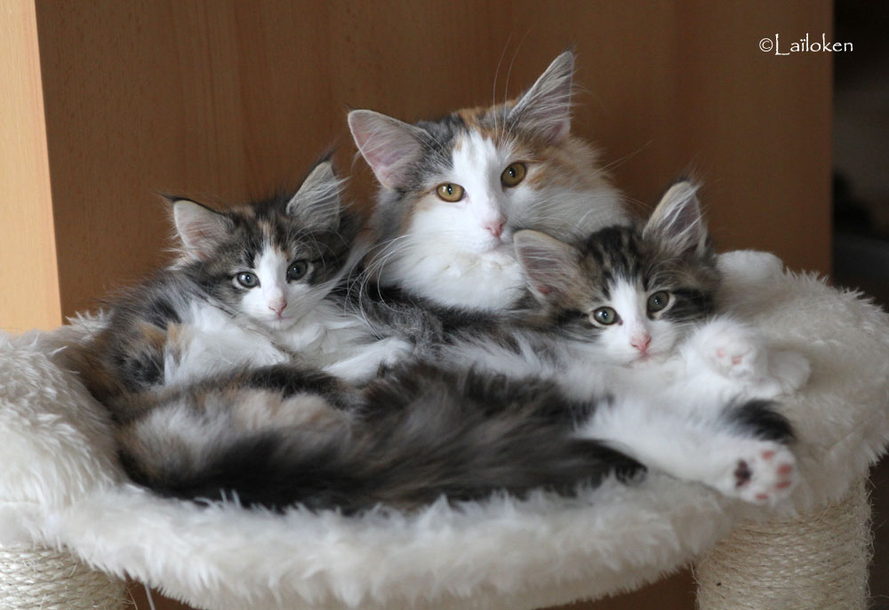 | Iris Nobile | femelle | écaille tabby & blanc (f 03 21) | dans sa famille (France) |