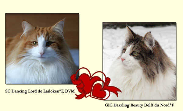 | SC DVM Dancing Lord de Laïloken + GIC Dazzling Beauty Delft du Nord chatons nés le 15/08/2013 pedigree de la portée |