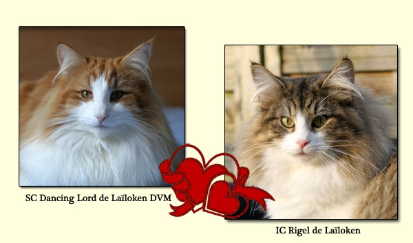 | SC, DVM Dancing Lord de Laïloken*F + IC H-Rigel de Laïloken chaton né le 16 Mai 2014 pedigree de la portée |