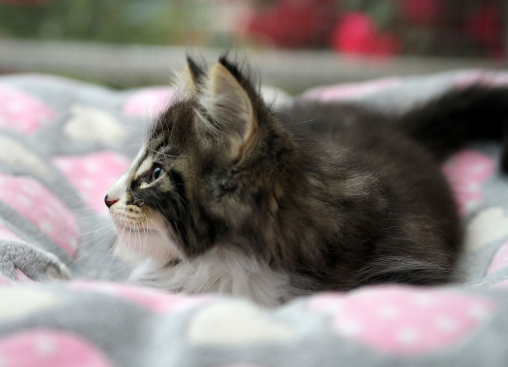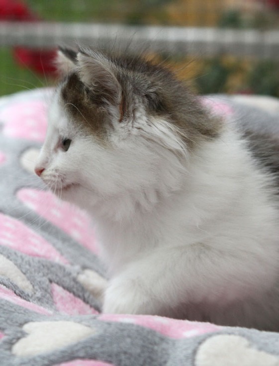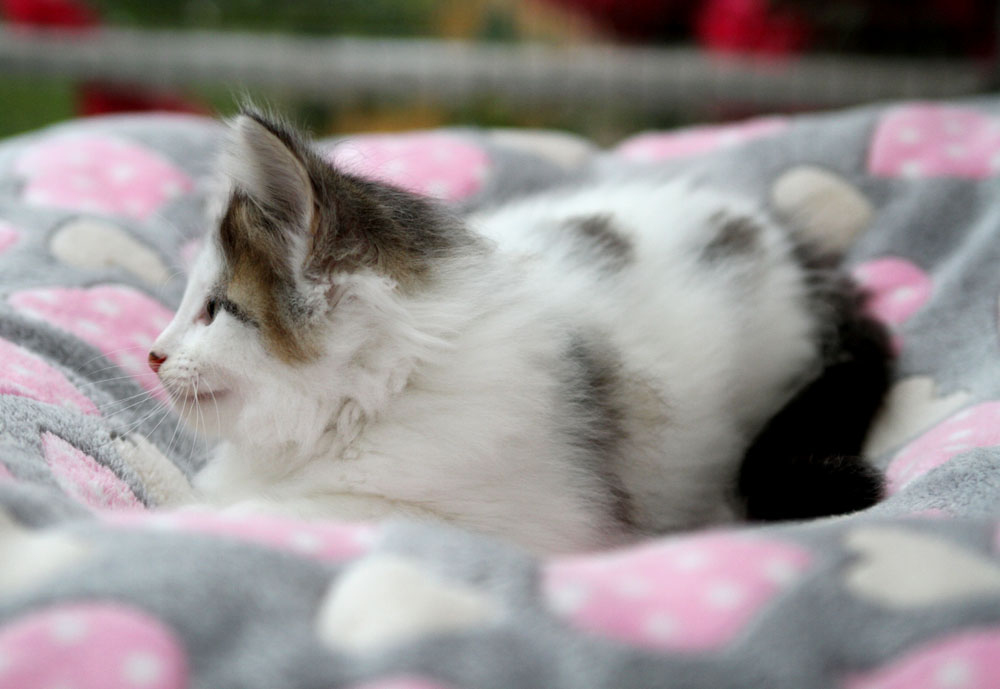 | Petite Panda | femelle | brown tabby et blanc arlequine (n 02 21) | dans sa famille |