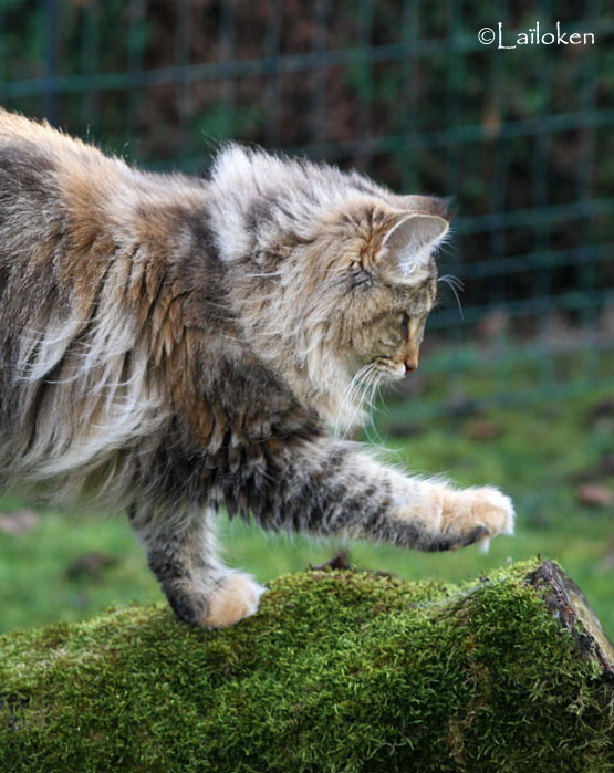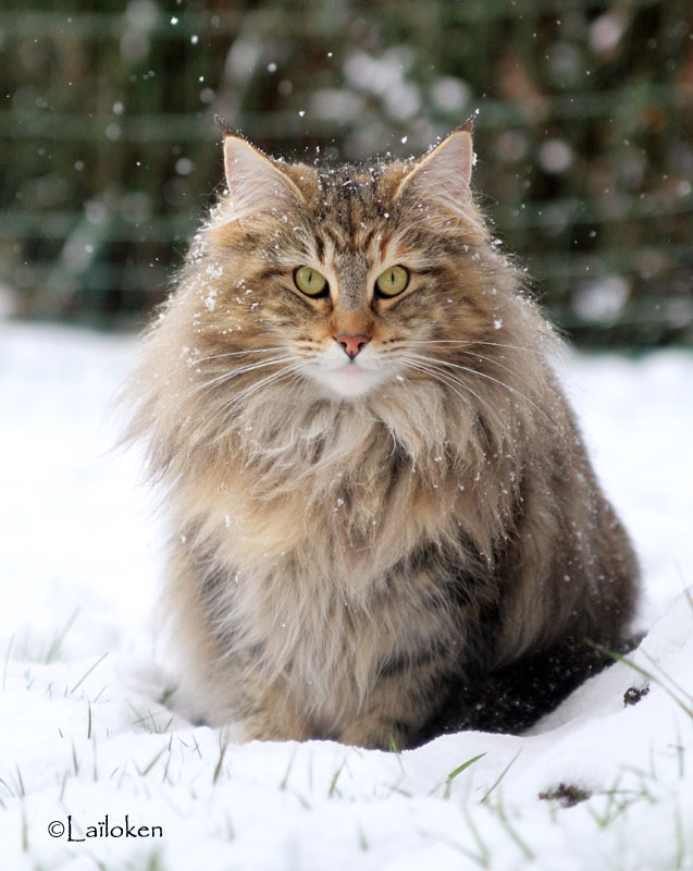 Elle a gardé le potentiel "chat des bois" au sens propre, totalement équipée pour les contrées froides, avec un look de chat sauvage ébourrifé et un regard qui vous cloue sur place - merci papa!