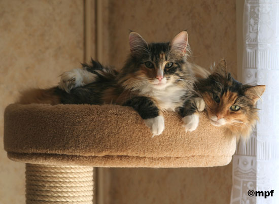 | La dernière photo de Nachka en avril 2007, avec son arrière arrière arrière petite fille, Forest Cat Belle |
