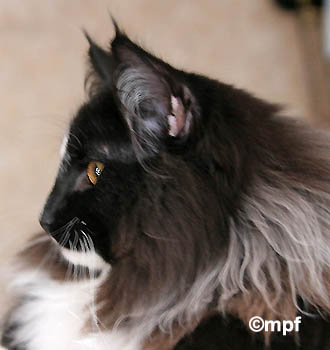 | Après la castration de Korsaire, je n'étais pas vraiment à la recherche d'un nouveau mâle... Mais voilà, avec Piero, ce fut un vrai coup de foudre! Depuis toujours j'ai adoré sa maman, bien avant que Nirvana ne devienne World Winner à Biella en 2005. Comment donc résister à son fils??... Piero est un chat qui allie l'indéniable charisme de sa maman, à de multiples qualités de type. Depuis les grosses pattes héritées de Neil Young Blue Tanis, au triangle de son papa Maxenthius, en passant par un caractère adorable caractéristique des chats Bue Tanis, une superbe fourrure et un profil impeccable avec une hauteur et un front fantastiques. Et bien sûr un pedigree hors du commun. Piero devrait dans l'avenir apporter un plus en type et en ossature à notre élevage, de part sa complémentarité avec l'ensemble de nos femelles. MILLE MERCIS Nelly, d'avoir accepté de me confier ce magnifique matou!!!! |