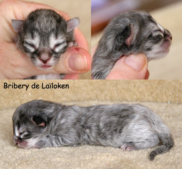 | Bribery | male | blue silver mackerell tabby (as 23) | Buck's Fizz | male | black silver mackerell tabby (ns 23) | Banshee | female | blue silver mackerell tabby (as 23) | Babylon Kiss | female | brown blotched tabby (n 22) | Bella Luna | female | brown mackerell tabby (n 23) | Blue Lagoon | female | blue silver mackerell tabby & white (as 09 23) |
