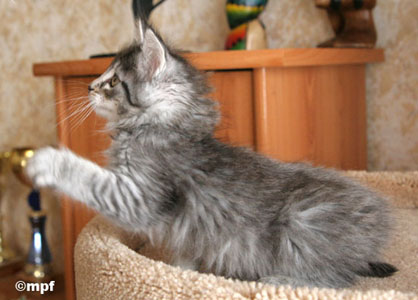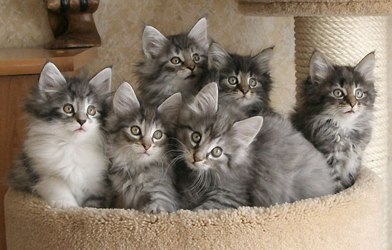 | Bribery | male | blue silver mackerell tabby (as 23) | Buck's Fizz | male | black silver mackerell tabby (ns 23) | Banshee | female | blue silver mackerell tabby (as 23) | Babylon Kiss | female | brown blotched tabby (n 22) | Bella Luna | female | brown mackerell tabby (n 23) | Blue Lagoon | female | blue silver mackerell tabby & white (as 09 23) |