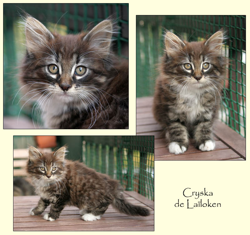 | Cryska | femelle | brown mackerell tabby et blanc (n 09 23) | réservée |