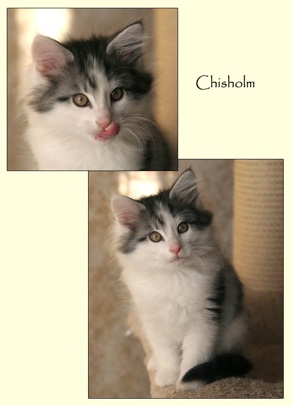 | Camden | male | black mackerell tabby (n 23) | Caladh | male | black silver mackerell tabby (ns 23) | Chattan | male | black silver blotched tabby (ns 22) | Cumming | male | black silver blotched tabby (ns 22) | Chisholm | male | black silver tabby & white (ns 03 21) |