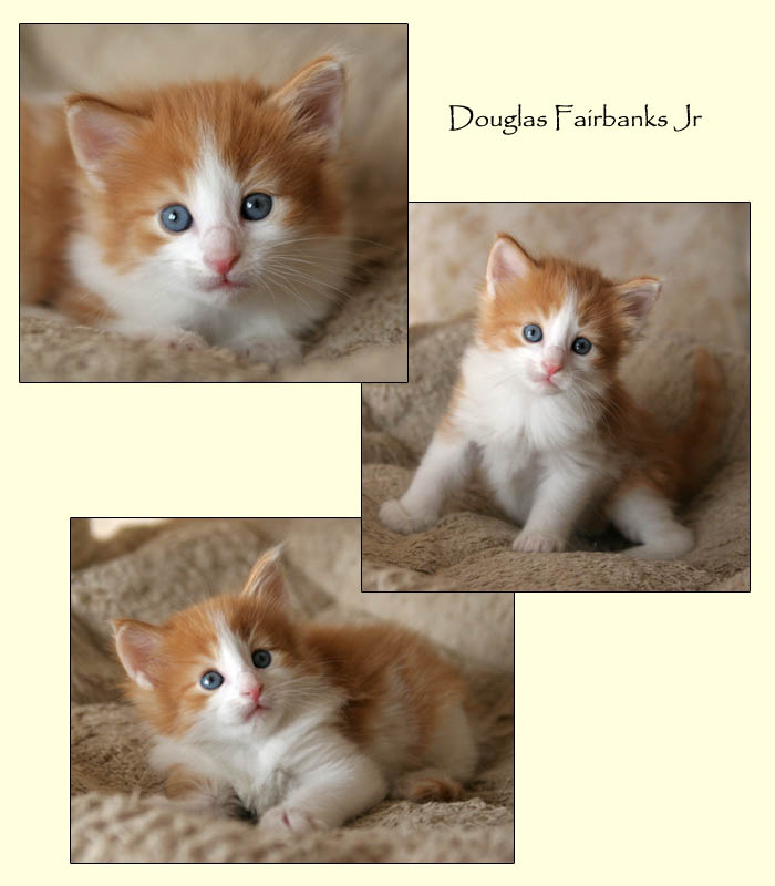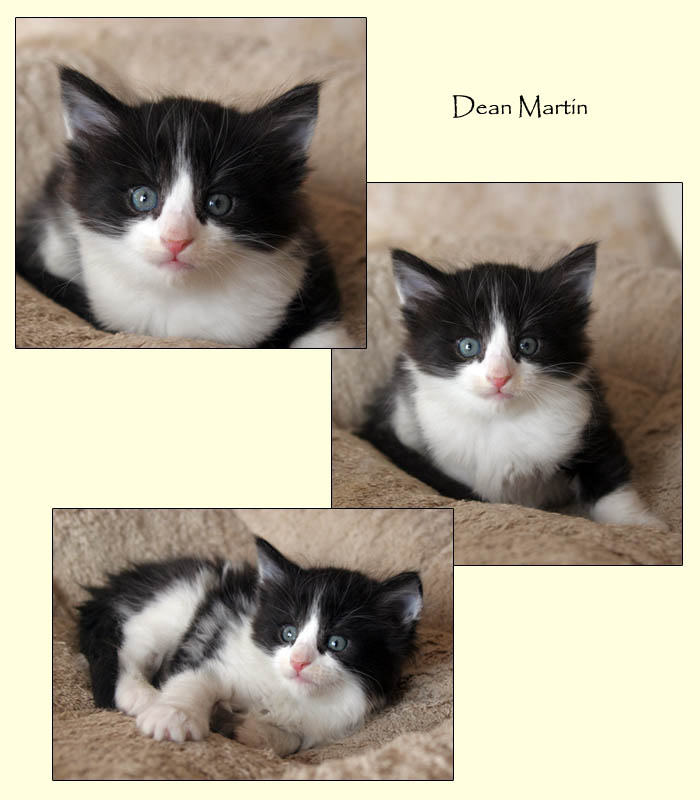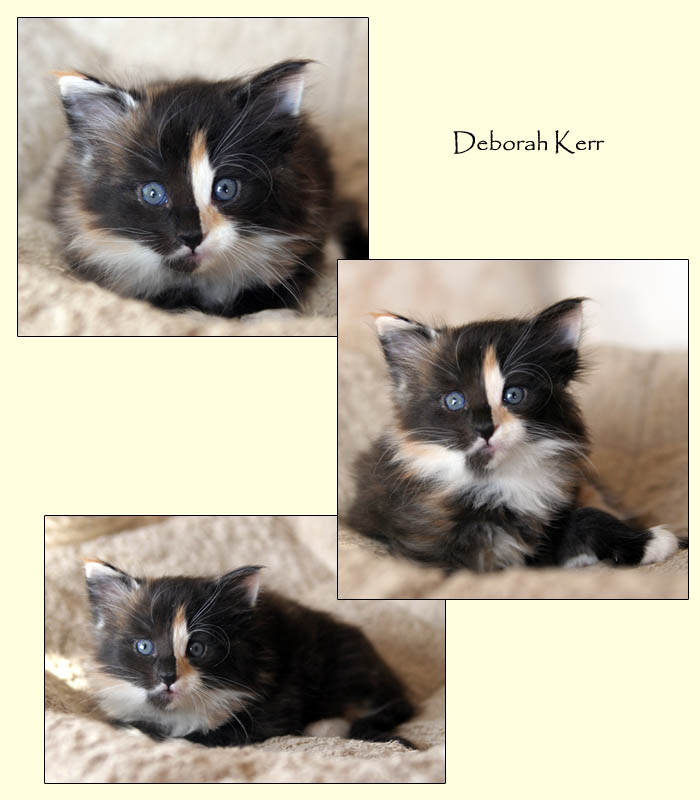 | Dean Martin | male | black & white (n 09) | Douglas Fairbanks Jr | male | red mackerell tabby & white (d 09 23) | Donna Reed | female | black silver mackerell tabby & white (ns 09 23) | Deborah Kerr | female | tortie (smoke?) & white (f-s?- 09) |
