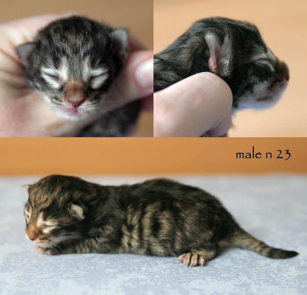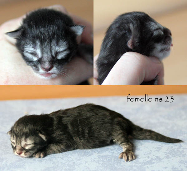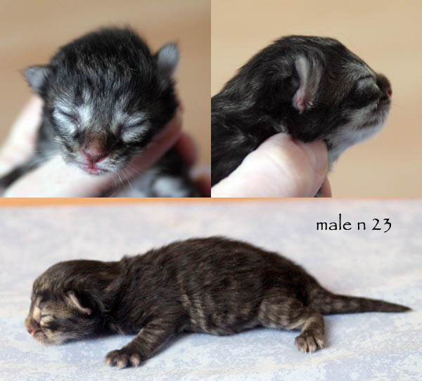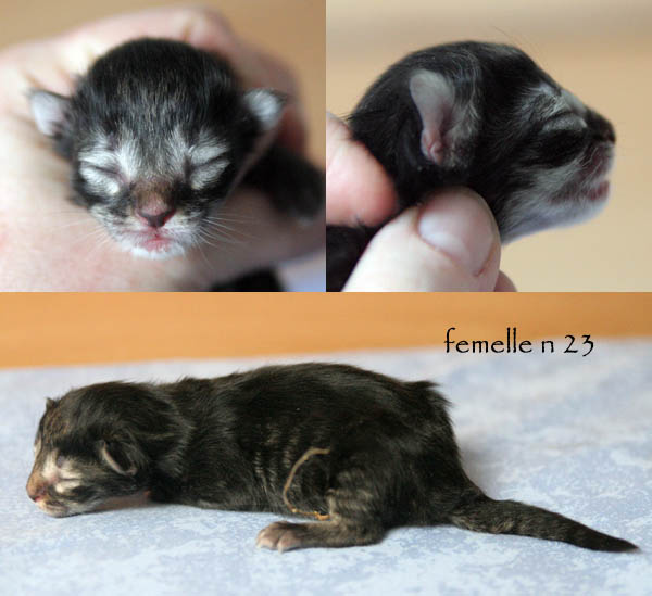 | Déjanire | femelle | black mackerell tabby (n 23) | Danaé | femelle | black silver mackerell tabby (ns 23) | Dryas | mâle | black silver mackerell tabby (ns 23) | Diomède | mâle | black mackerell tabby (n 23) | Dédale | mâle | black mackerell tabby (n 23) | Damoclès | mâle | black blotched tabby & blanc (n 09 22) |