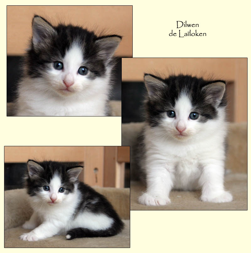 | Dilwen | femelle | black mackerell tabby et blanc (n 09 23) |