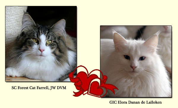 | SC F* Forest Cat Farrell JW DVM + IC Elora Danan de Laïloken*F chatons nés le 28 octobre 2012 pedigree de la portée |