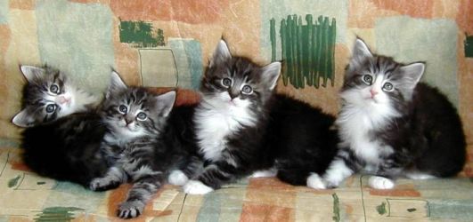 | GIC Solskinn du Domaine d'Asgar*F + IC Holy Angel av Skara Brae*CH 4 chatons nés le 1er Avril 2003 |