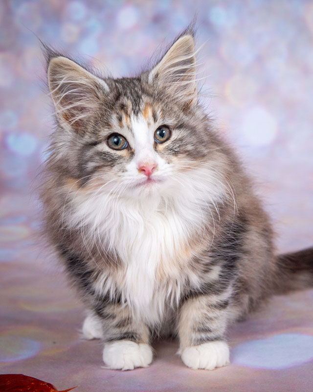 | Whitney Houston | femelle | black silver blotched tortie tabby et blanc (fs 09 22) | dans sa famille |
